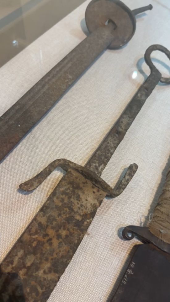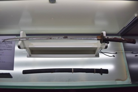 侵華日軍第七三一部隊罪証陳列館展出的一把獎勵解剖技師的軍刀。新華社記者 楊思琪 攝