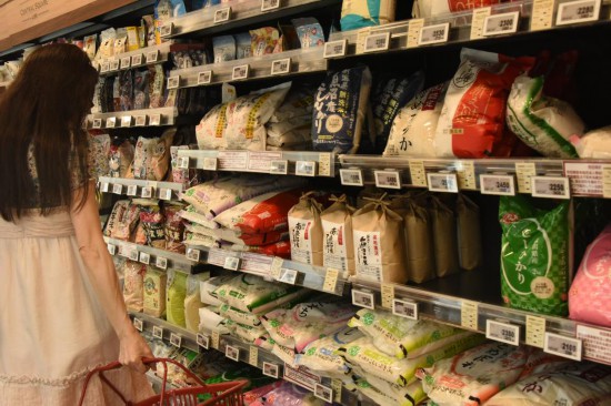 5月21日,顧客在日本東京的一家超市選購大米。新華社記者胡曉格攝