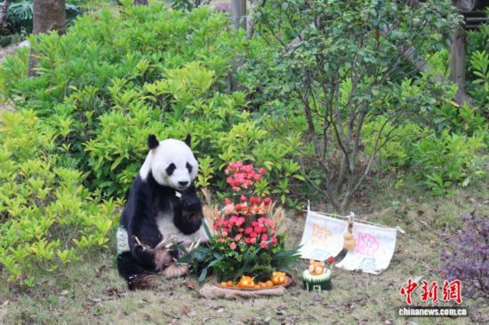 12月23日,旅日归国大熊猫“明浜”在广西柳州市动物园迎来19岁生日。林馨 摄
